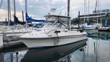The 23 foot Grady White Gulfstream is widely known as the best 23 foot fishing boat on the water. With its wide beam and open layout, it feels like a way bigger boat! Our Gulfstreams are expertly equipped with new 300hp Yamaha engines complimented by 9.9hp trolling motors with aft steering. The boats have top of the line fishing gear and our perfect west coast fishing boats. There is a flush toilet inside the cabin. Our Grady White Gulfstreams can accommodate 1-4 guests.